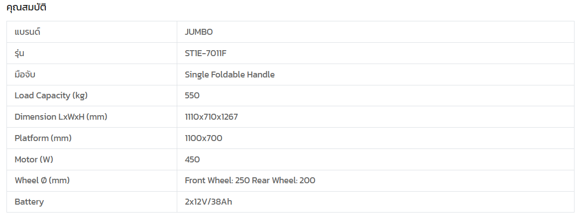 ระยะเวลาในการชาร์จแบตเตอรี่ 6.5 ชม. และสามารถใช้งาน ได้ต่อเนื่องนาน 3.5 ชม. ขณะรับน้ำหนักเต็มพิกัด