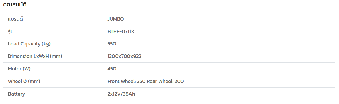 ระยะเวลาในการชาร์จแบตเตอรี่ 6.5 ชม. และสามารถใช้งาน ได้ต่อเนื่องนาน 3.5 ชม. ขณะรับน้ำหนักเต็มพิกัด