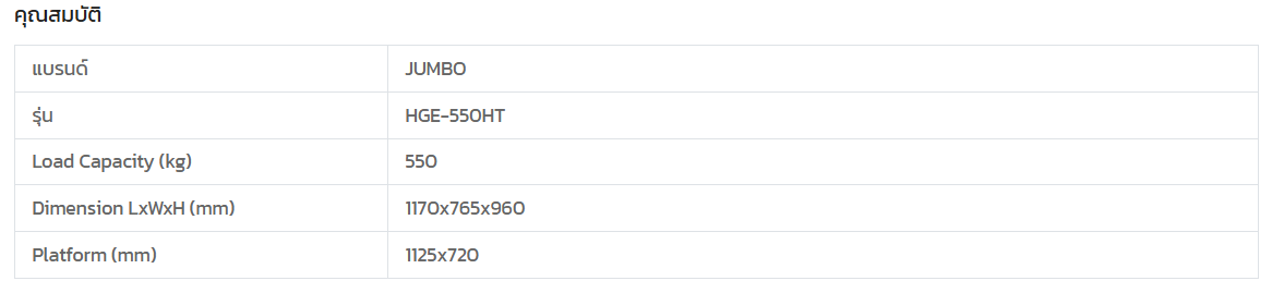 ระยะเวลาในการชาร์จแบตเตอรี่ 6-8 ชม. และสามารถใช้งานได้ต่อเนื่องนาน 3.5 ชม. ขณะรับน้ำหนักเต็มพิกัด