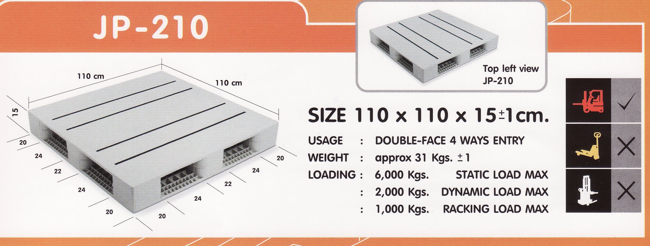 พาเลทพลาสติกหน้าเดียว 1,000x1,200x148 mm.