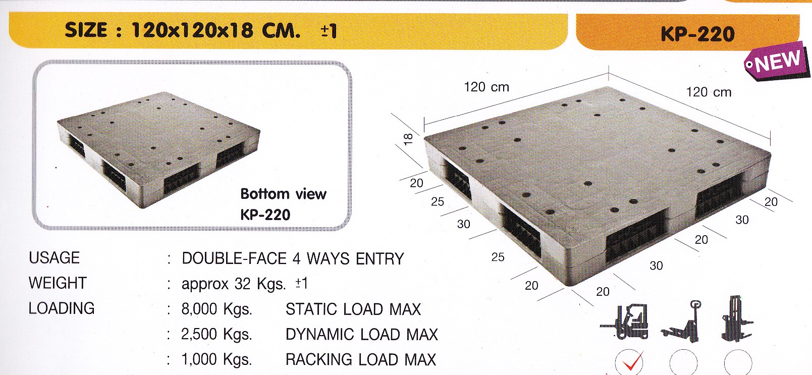 พาเลทพลาสติกหน้าเดียว 1,000x1,200x148 mm.