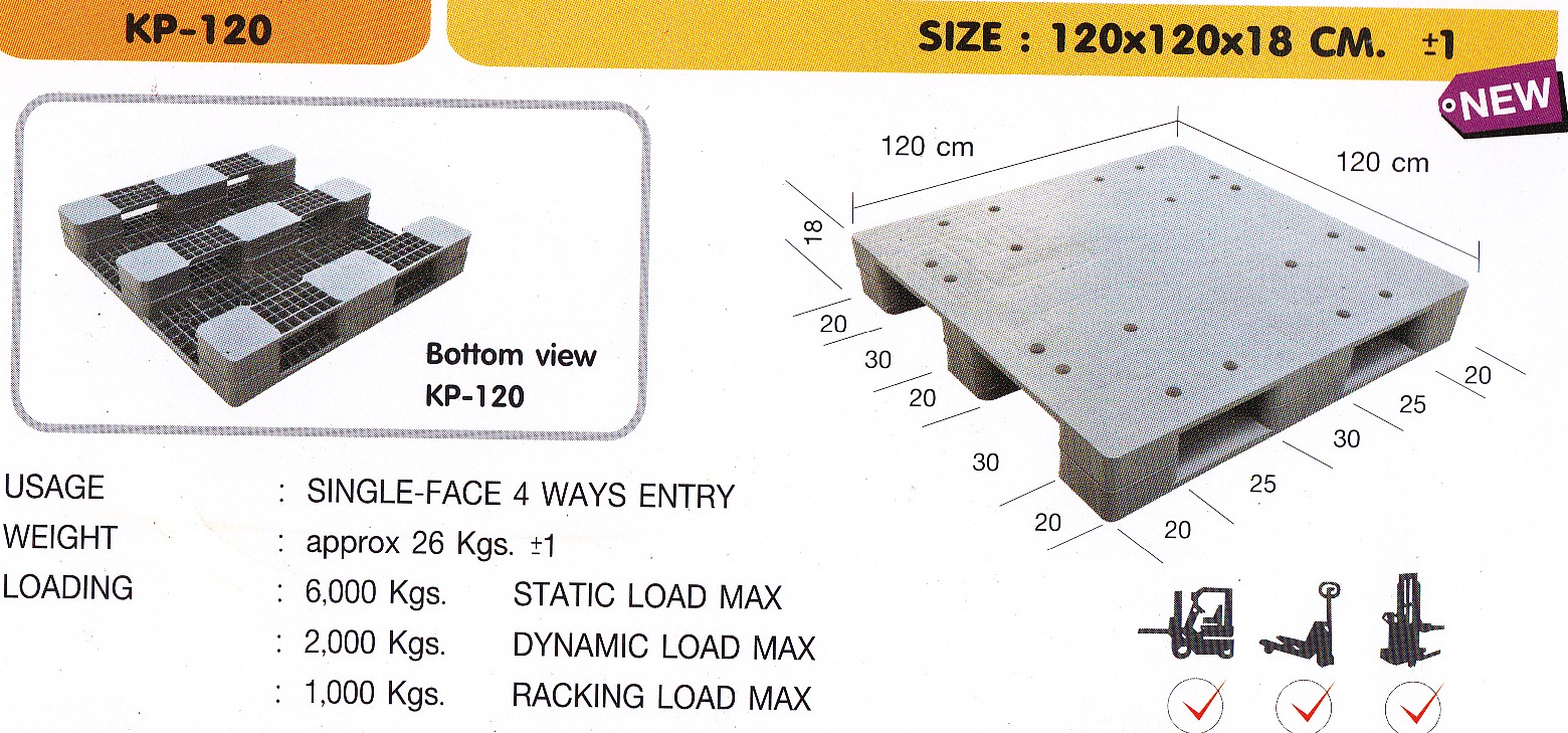 พาเลทพลาสติกหน้าเดียว 1,000x1,200x148 mm.